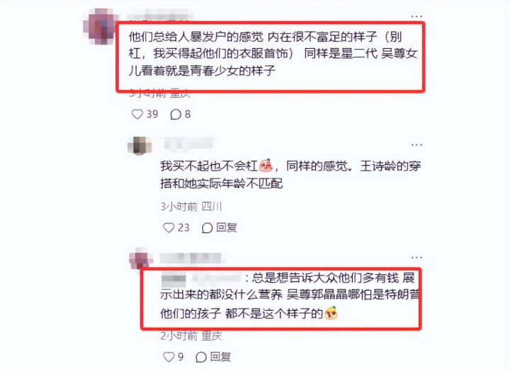 别东谈主都穿的安稳低调,她们母女却像是来炫富的,衣服定制的征服,带着腾贵的金银首饰,还驰名牌包包等。