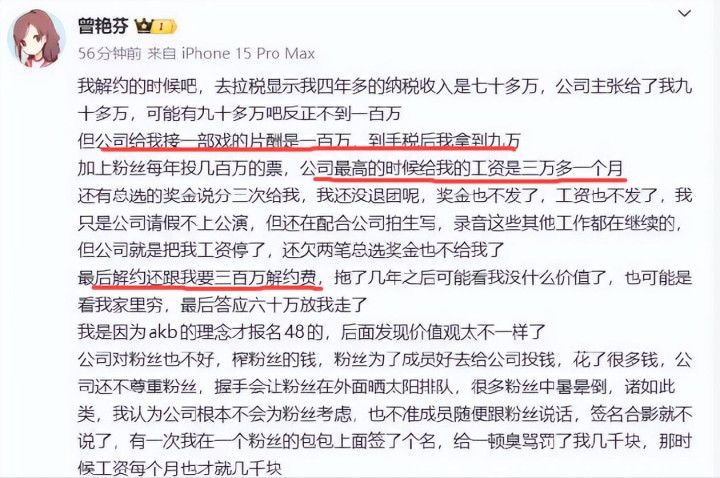 百万片酬到她手里唯有9万,每月收入3万块都莫得,想解约很难,要先给300万违约金。