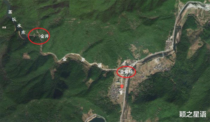 桥下的溪流上游,有一口自然的圆形大深坑,东说念主称“金井”,溪流和桥都因金井而名。
