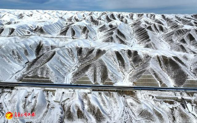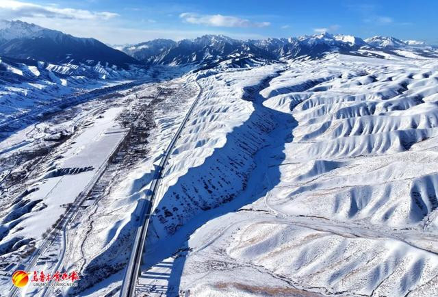 乌尉高速乌鲁木王人至天平地谈路段,银装素裹的褶皱山峦间,高速公路穿境而行,绘就出交通与当然相融的画面。(12月22日无东谈主机摄)