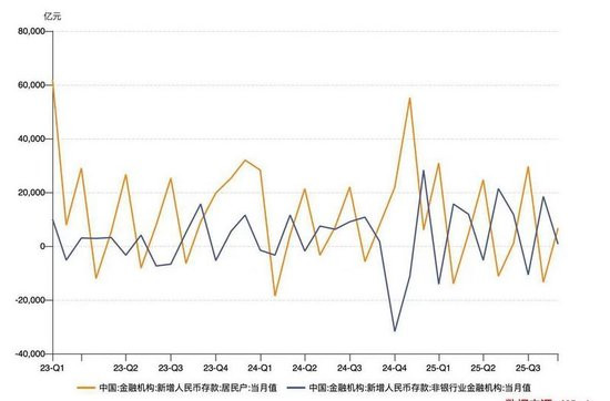 基于各部门资金需求情况和银行功绩侦查等季节性要素,住户和企业进款多在季初月份环比减少,非银进款和财政进款则多在季末月份出现下落。尤其在2025年,住户进款和非银进款呈现出更强的负相干性。